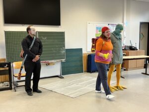 Auch in diesem Jahr besuchte uns das Verkehrstheater mit dem Stück „Immer dem Schnabel nach“. Die Kinder der 1. Klassen der Grundschule Niederweimar lernten dabei spielerisch, wie sie sich sicher im Straßenverkehr bewegen können. Mit Musik, Spaß und anschaulichen Beispielen wurden wichtige Verkehrsregeln vermittelt – ein lehrreiches und zugleich unterhaltsames Erlebnis, das die Schülerinnen und Schüler begeistert hat.