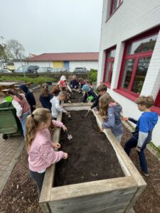 Im Rahmen des Sachunterrichts bepflanzten die Klassen 4a und 4b unsere Hochbeete mit Kartoffeln. Mit viel Freude und Tatendrang setzten die Kinder die Knollen ein und erfuhren dabei Spannendes über Wachstum und Pflege. Nun warten alle gespannt darauf, die Entwicklung der Kartoffelpflanzen zu beobachten…