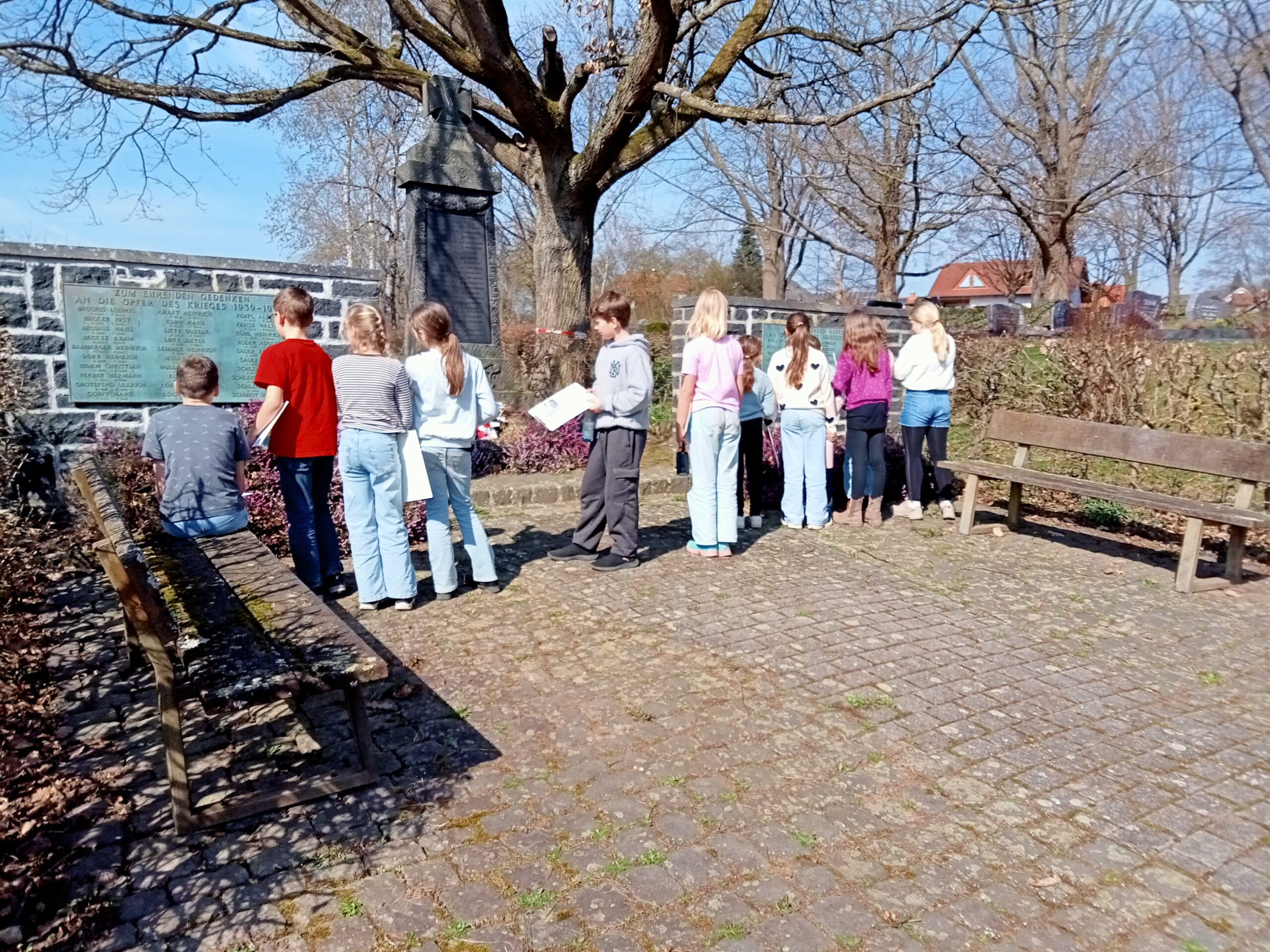 Am 19.03.2026 besuchte die Religionsgruppe der Klasse 4b den Friedhof in Niederweimar. Im Vorfeld hatten sich die Kinder intensiv mit dem Thema „Solange jemand an sie denkt“ beschäftigt. Gemeinsam sprachen sie darüber, wie man sich an Menschen erinnern kann, die gestorben sind, und wie wichtig es ist, liebe Verstorbene im Herzen zu behalten.