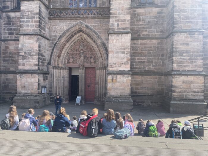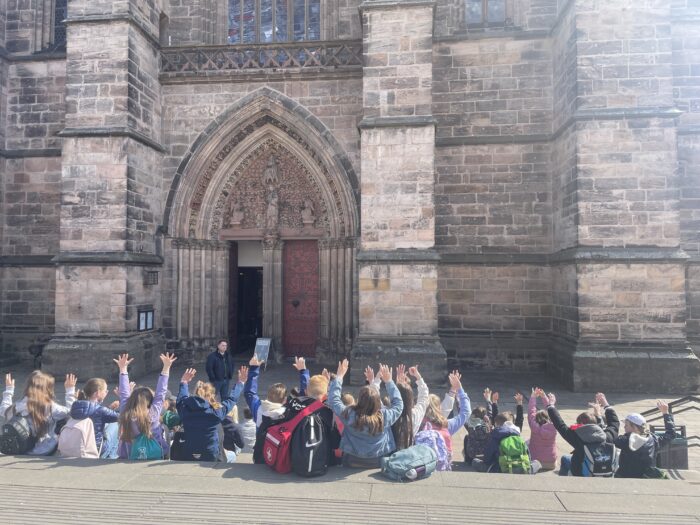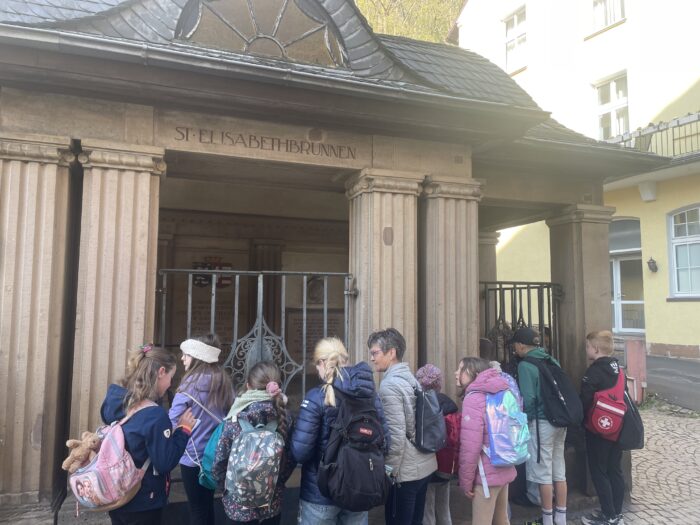 Bei der zweiten Station begaben sich die Schülerinnen und Schüler auf eine Spurensuche zur heiligen Elisabeth. Dabei besuchten sie unter anderem den Elisabethbrunnen, das Michelchen (St. Michaelskapelle) und die Elisabethkirche. So konnten die Kinder Geschichte direkt vor Ort erleben und viele interessante Eindrücke sammeln.