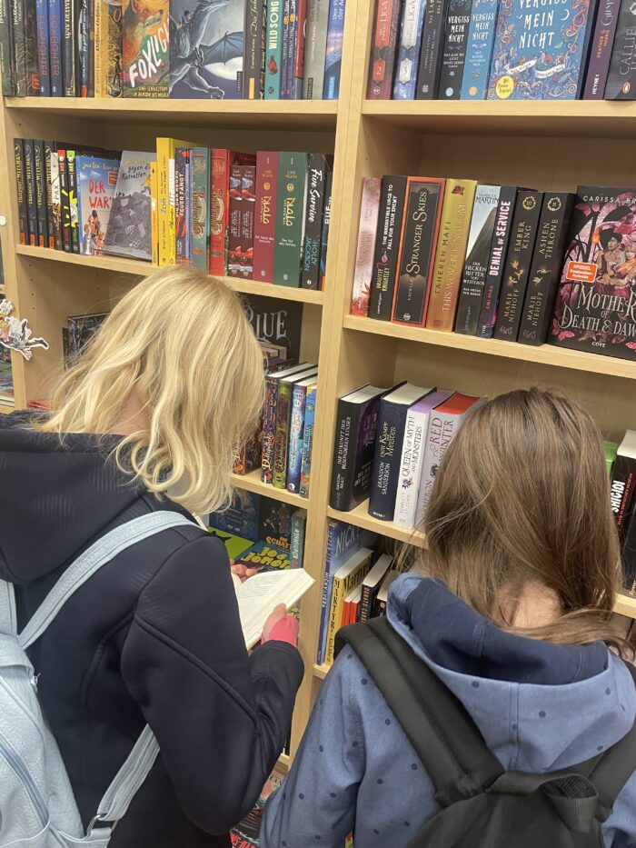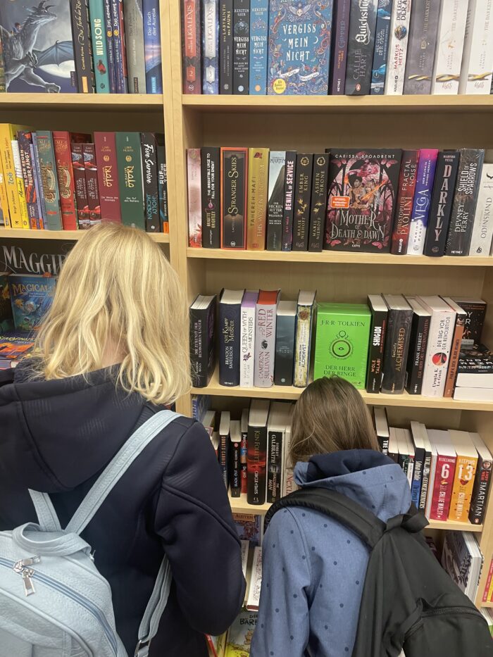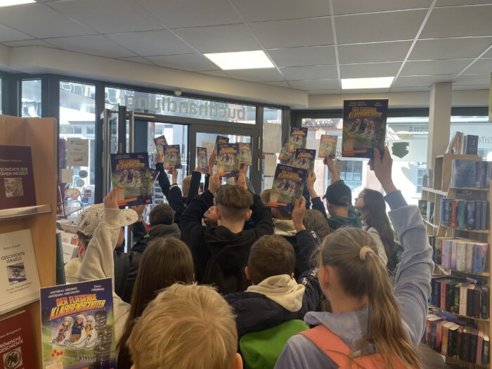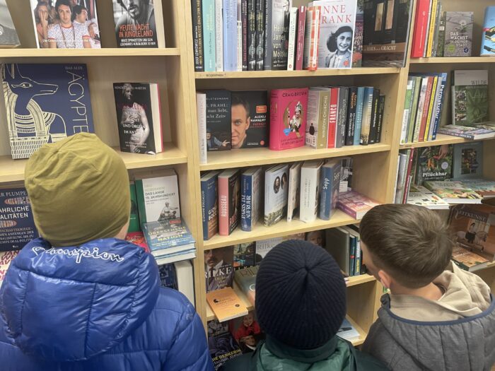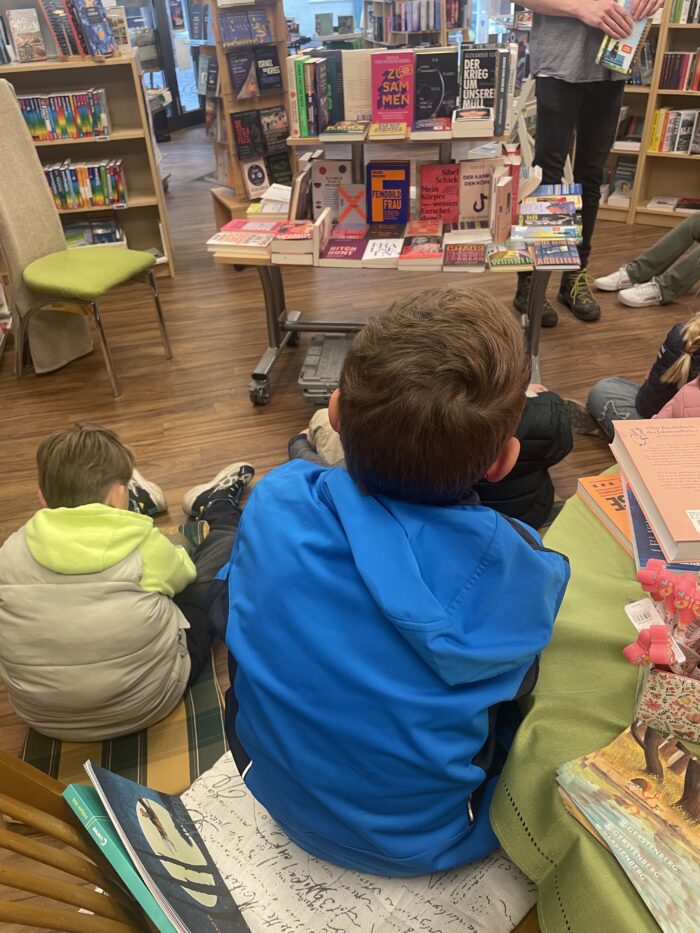 Die beiden Klassen teilten sich auf und besuchten im Wechsel die Buchhandlung und die Elisabethkirche. In der Buchhandlung Inge Jakobi erfuhren die Kinder viel über Bücher, das Lesen und die Arbeit in einer Buchhandlung. Besonders gefreut haben sich alle über ein Buchgeschenk, das die Kinder anlässlich des Welttages des Buches erhalten haben.